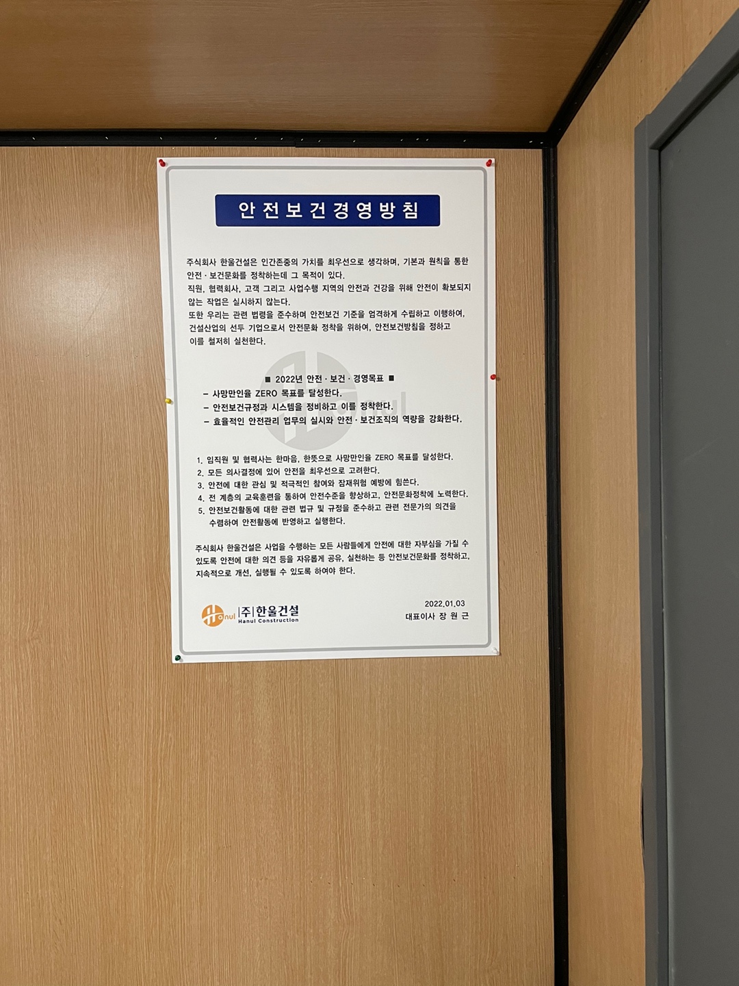 2. 안전보건경영방침 설치