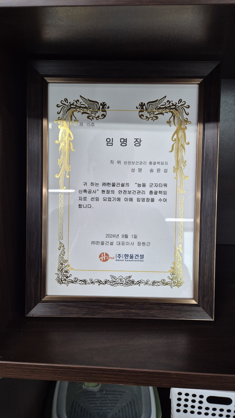 1. 안전보건총괄책임자 임명장