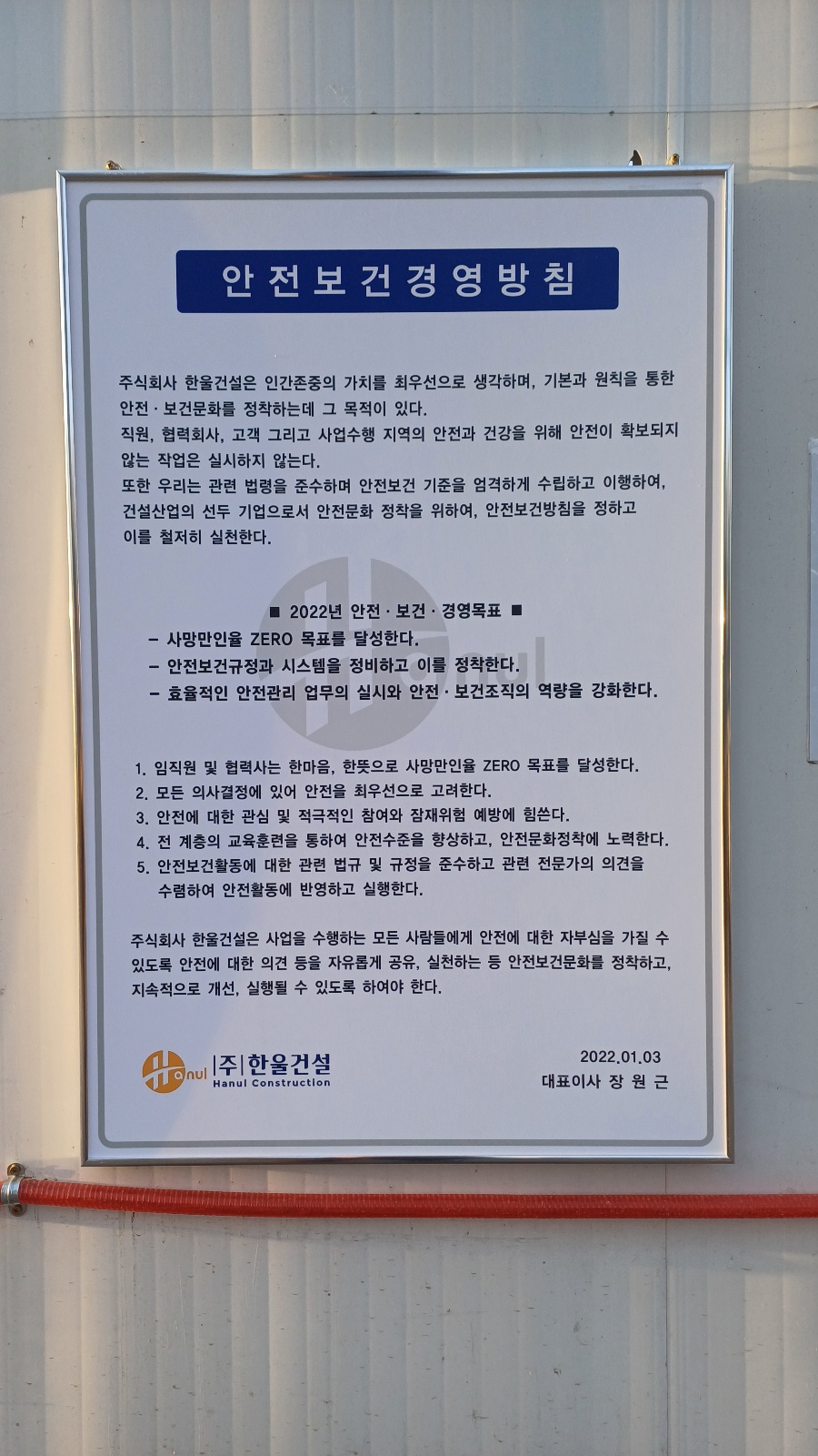 2. 안전보건경영방침 내외부 설치 및 안전활동/안전점검의 날 별도운영
